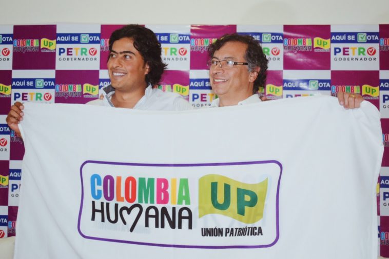 Durante su visita a Barranquilla, el senador Gustavo Petro le hizo entrega simbólica de la bandera de la Colombia Humana a su hijo Nicolás Petro, actual candidato a la Gobernación del Atlántico.