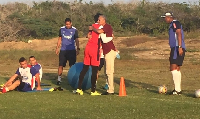 El timonel barranquillero que renunció por diferencias con el dirigente del equipo Fuad Char recibió abrazos y palabras de cariño y fortaleza por parte de los jugadores.