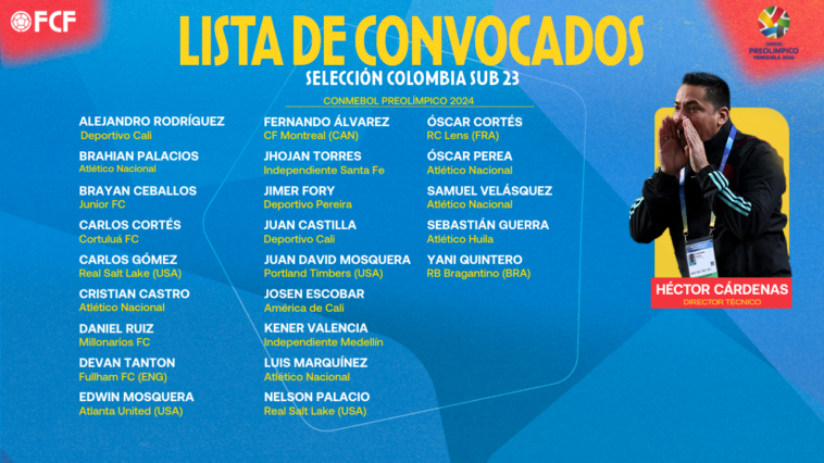 El director técnico de la Selección Colombia Sub 23, Héctor Cárdenas, dio a conocer la lista de jugadores que disputarán el Torneo Preolímpico 2024 de la CONMEBOL.
