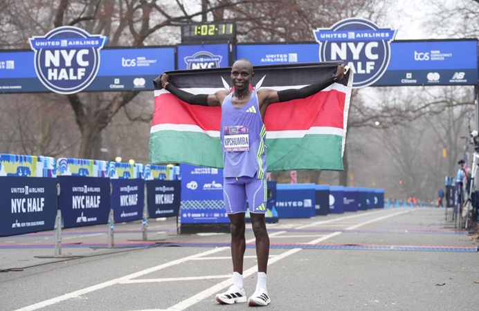 Kipchumba, que ya había ganado esta prueba en 2024, repitió victoria en la competición masculina con un tiempo récord en Nueva York de 59:09.