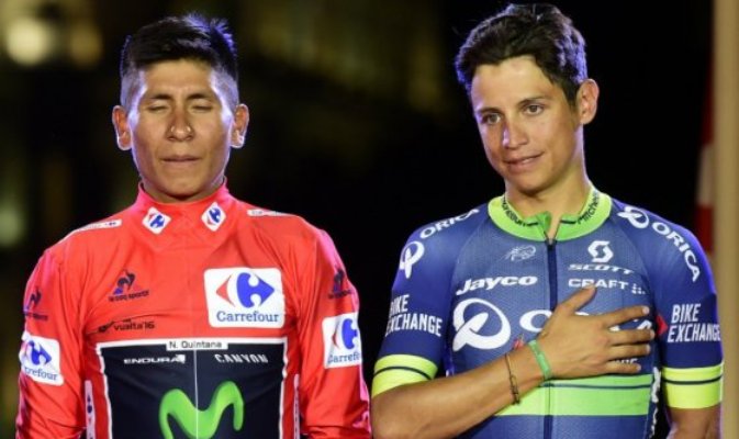 El colombiano Nairo Quintana celebró su primer triunfo en la Vuelta a España, la segunda grande de su palmarés después del Giro de 2014. «Se nota la emoción que se está sintiendo en toda Colombia y que estoy sintiendo yo, es una gran responsabilidad llevar el nombre del país por el mundo y hoy lo estamos haciendo», expresó con felicidad el colombiano.