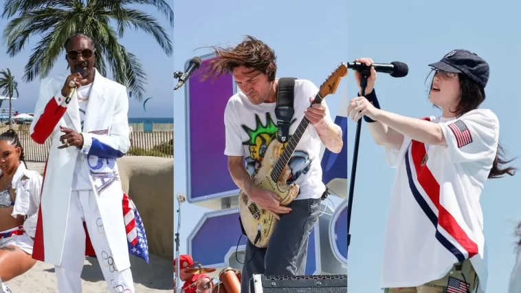 Red Hot Chili Peppers, Dr. Dre, Billie Eilish y Snoop Dogg, quien ha desplegado su atractivo estelar en los Juegos Olímpicos de París con múltiples apariciones en NBC, mantuvieron la energía en un show pregrabado desde California, el estado de donde son originarios estos artistas. Después de interpretar “Drop It Like Its Hot”, Dogg convocó a Dr. Dre para su clásico “The Next Episode” en Long Beach, California.