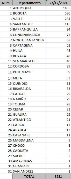 Con estas cifras, Colombia llega a 5.127.971 casos de Covid-19 diagnosticados durante la pandemia, de los cuales 18.620 se encuentran activos. Han fallecido 129.798 personas, mientras que 4.961.099 se han recuperado.