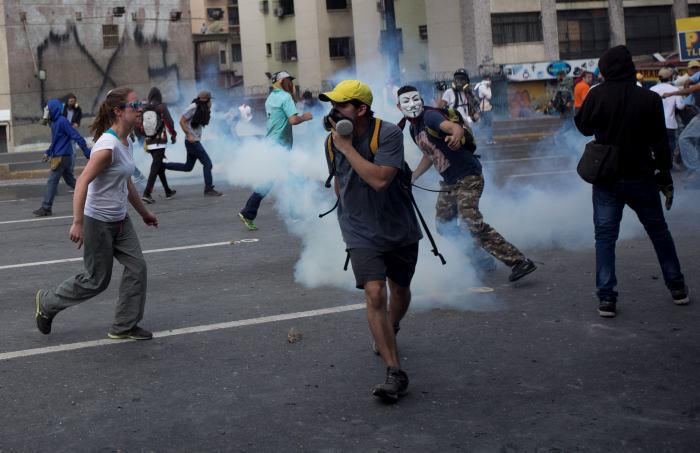 Decenas de manifestantes que estaban encapuchados y que se encontraban en una de las entradas de la UCV también se enfrentaron devolviendo los gases lacrimógenos a los efectivos de la Guardia Nacional Bolivariana (GNB, policía militarizada) que desde horas antes bloqueaban los accesos a la casa de estudios.