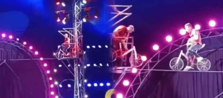 En video quedó registrada la muerte del acróbata colombiano Sixto Octavio Chavarro, quien sufrió una caída de una altura considerable, cuando actuaba con un bicicleta sobre la cuerda floja.