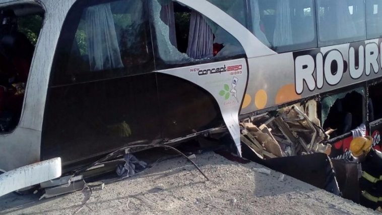 Hacia las 06.00 hora local el vehículo, de dos pisos, se chocó contra el puente «El Tigrecito», que está en proceso de construcción en el municipio entrerriano de Villaguay.