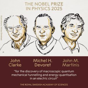 La Real Academia Sueca de Ciencias ha decidido otorgar el premio Nobel de Física 2025 a los investigadores John Clarke, Michel H. Devoret y John M. Martinis «por el descubrimiento del efecto túnel mecánico cuántico macroscópico y la cuantificación de la energía en un circuito eléctrico«.
