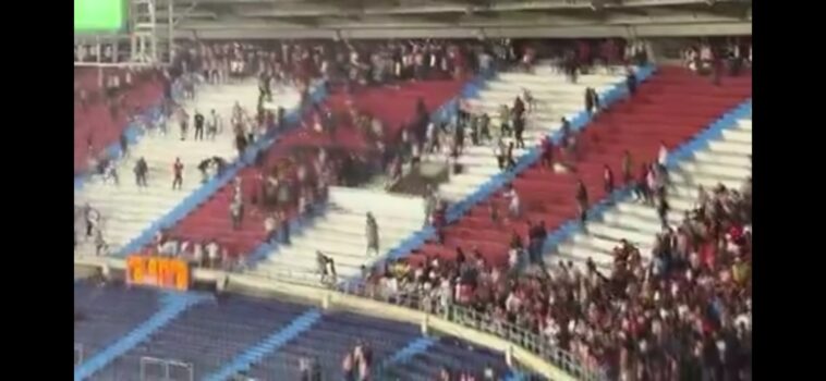 Por estos hechos, fue evacuada la tribuna Sur utilizando las salidas de emergencia, incluyendo los accesos a la pista atlética.