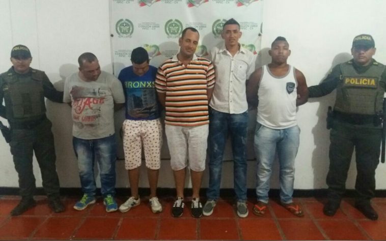 Los capturados responden a los nombres de: José Luís Lamadrid Valega, 37 años; David Enrique Manotas Serna, 35 años; Maicol Edgardo Baca Batista, 26 años; Jam Monsalvo Pacheco, 24 años; y Lorenzo Leonid Cabrera Martínez, 25 años.