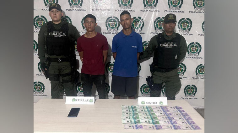 Gracias a las labores de investigación y seguimiento, fue capturado alias ‘Adriancito’ y alias ‘El Llorón’, cuando intimidaban a su víctima, a quien amenazaban con atentar contra su vida a nombre del grupo delincuencial ‘Los Costeños’.