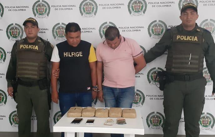 Al practicar una requisa al vehículo, fueron encontrados 5 kilos de marihuana prensada y dinero en efectivo. Los capturados fueron identificados como Elkin Gomez Vázquez, de