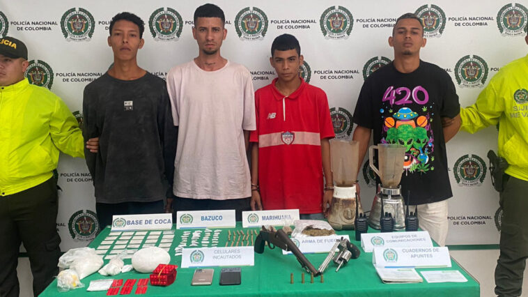 La Policía del Atlántico en desarrollo de la operación “Artemisa II” contra el tráfico de estupefacientes en el departamento, capturó a 4 personas a quienes les incautación dos armas de fuego y más de 1.800 gramos de estupefacientes.