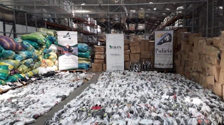 Cerca de 10.000 prendas de vestir, 3.295 gorras, 6.248 pares de calzado, 640 repuestos para bicicleta y otras mercancías fueron incautadas este fin de semana por la DIAN, seccional Medellín, en almacenes del sector de ‘El Hueco’.