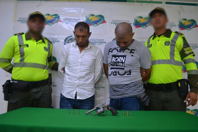 El caso ocurrió en un puesto de control ubicado en la calle 46 con carrera 14 del barrio Cevillar, donde luego de un procedimiento de registro fueron capturados Donny Granados Altamiranda, de 39 años, quien presenta dos anotaciones por porte ilegal de armas de fuego en 2012 y lesiones personales en 2013; y Carlos Andrés Rambal Velázquez de 26 años, quien registra 5 anotaciones: una por homicidio, dos por porte ilegal de armas de fuego y otras dos por hurto.