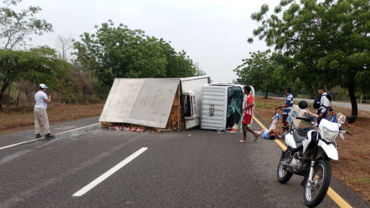 Ambos iban a bordo de un camión de la empresa Mac pollo, el cual sufrió volcamiento lateral.
