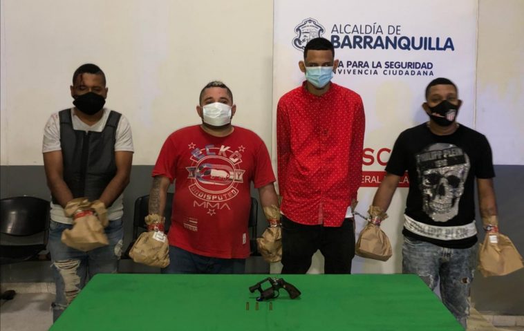 Son ellos: César Alberto Molina Chávez, de 26 años, quien presenta dos anotaciones por porte ilegal de armas, y concierto para delinquir; Harly Manuel Marín Oyola, de 22 años, quien registra una anotación por hurto, Kevin Andrés Martínez Cabarcas, de 32, con 4 cuatro anotaciones por porte ilegal de armas, lesiones personales, porte de estupefacientes, y abuso de confianza; y Jorge Eliécer Escorcia Charris, de 29 años, quien registra una herida abierta en la región frontal.