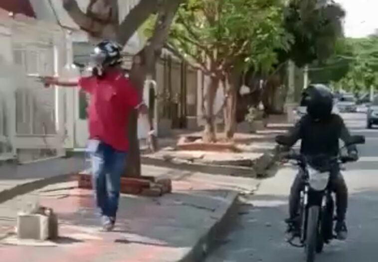En redes sociales circula un vídeo que muestra a un sujeto armado que desciende de una moto, el cual corre armado y dispara en seis ocasiones contra la fachada de una vivienda en el barrio Los Andes de Barranquilla, la tarde del jueves.