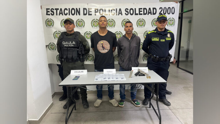 La información oficial indica que dos sujetos fueron capturados en flagrancia por la Policía Metropolitana de Barranquilla, por el delito de fabricación, tráfico porte de armas de fuego.