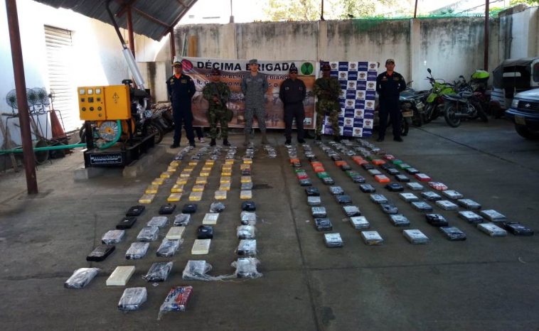 Un trabajo conjunto entre la Fuerza Aérea, Ejército y el CTI de la Fiscalía, permitió la incautación de 117 kilogramos de clorhidrato de cocaína, 52 libras de marihuana, munición de diferentes calibres y un teléfono satelital.