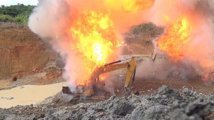En operación conjunta, coordinada e interagencial entre la Fuerza Aérea Colombiana, el Ejército Nacional, la Dirección de Carabineros de la Policía Nacional y la Fiscalía General de la Nación se logró dar un duro golpe a las finanzas del frente Alfredo Gómez Quiñones del ELN, que se lucraba con la minería ilegal.