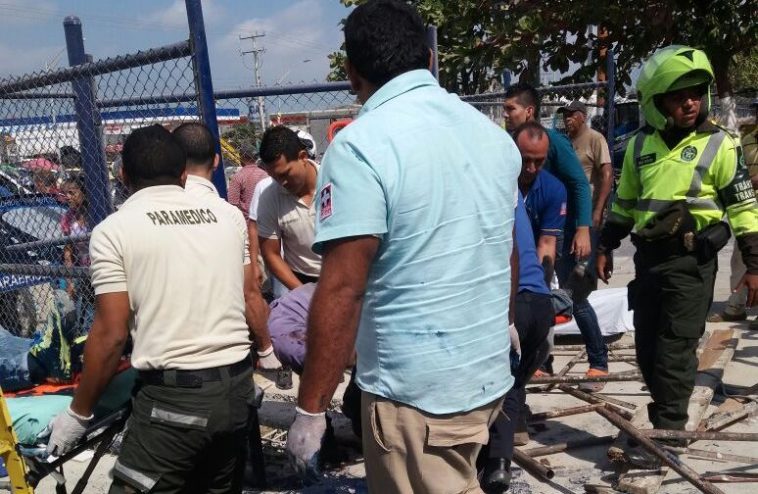 Tres obreros resultaron heridos al volcarse un montacargas que los sostenía, en momentos en que realizaban labores de pintura en un centro industrial de la avenida Circunvalar, ubicado en el barrio La Pradera.