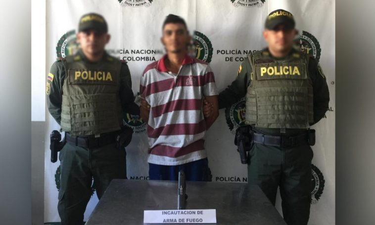 La policía del cuadrante atendió un llamado en el que se denunciaba que esta persona había disparado contra un menor y, al llegar al lugar, lograron interceptar y capturar a este sujeto.