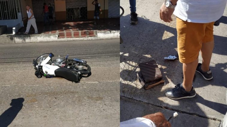 Dos hombres que se movilizaban en una motocicleta fueron arrollados por un vehículo que los iba persiguiendo tras haber cometido un presunto atraco en un restaurante en el barrio Nueva Granada de Barranquilla.