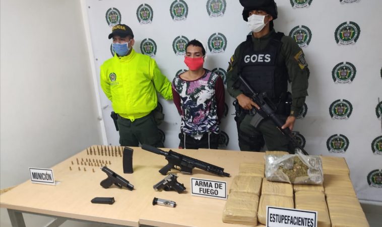 «Ahora por fabricación, tráfico y porte de armas de fuego de uso exclusivo de las Fuerzas Militares y por tráfico de estupefacientes», dijo el subcomandante de la Policía.