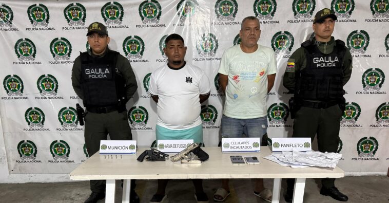 En un segundo operativo simultáneo, realizado mediante dos diligencias de allanamiento en los barrios La Sierrita y Rebolo, fueron capturados en flagrancia dos presuntos delincuentes de 22 y 43 años. Ambos son señalados como integrantes de las organizaciones criminales “Los Costeños” y “Los Pepes”, respectivamente, grupos que dinamizan el delito de la extorsión en la ciudad.