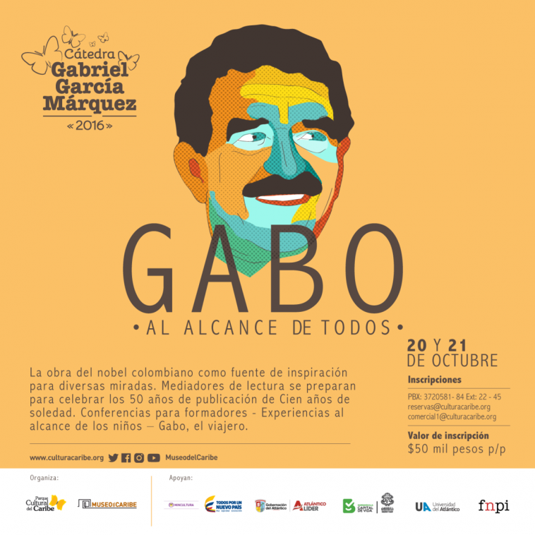 Para acceder a la cátedra puede comunicarse a través del PBX. 3720581 ext. 19 – 22 – 45 reservas @culturacaribe.org, [email protected] Inversión de $50 mil pesos por persona. Aplican descuento del 20% hasta el 14 de octubre. Formulario de inscripción: http://bit.ly/CatedraGGM2016