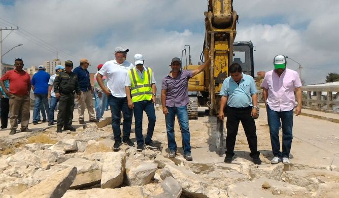 el alcalde hizo la revelación en el inicio de la demolición del puente de la calle 48 con carrera 50 que hace parte de las obras del par vial de la 50 y de la canalización del arroyo Felicidad que atraviesa este sector del barrio Abajo.