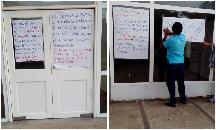 Ante la falta de pago de dos EPS al hospital de Juan de Acosta, los trabajadores de esta entidad hospitalaria decidieron suspender la atención a los pacientes de Comparta y Mutual Ser.