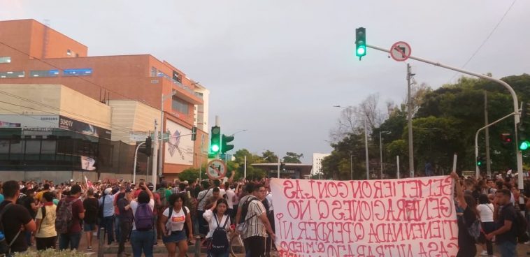 La protesta en la capital del Atlántico se concentra en la Plaza de la Paz, donde los manifestantes bloquearon la troncal Olaya Herrera, a la altura de la calle 53, por lo que Transmetro decidió cerrar la estación Catedral y operar con desvíos.