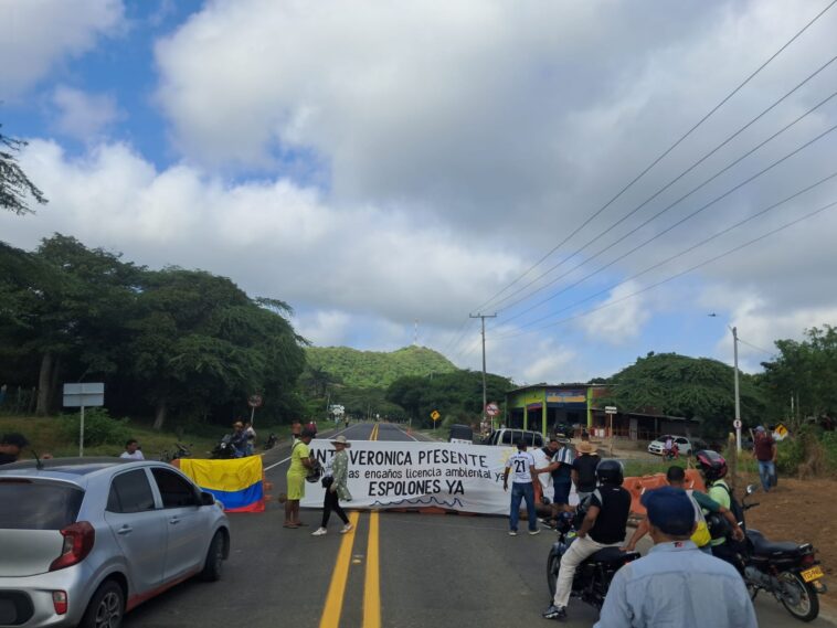 La Vía al Mar permanece bloqueada este lunes a la altura de Santa Verónica, en jurisdicción de Juan de Acosta, por manifestaciones ciudadanas que exigen al Gobierno Nacional la pronta aprobación de la licencia ambiental para la construcción de espolones que permitan recuperar las playas del sector.
