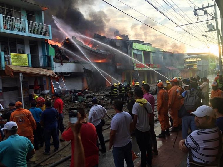 El subsecretario de Gestión del Riesgo de Desastres, Edinson Palma Jiménez, quien está en el sitio de los hechos, aseguró que el incendio, fue ocasionado, al parecer, por un cortocircuito en uno de los locales comerciales. Informó que las llamas acabaron con 30 locales comerciales