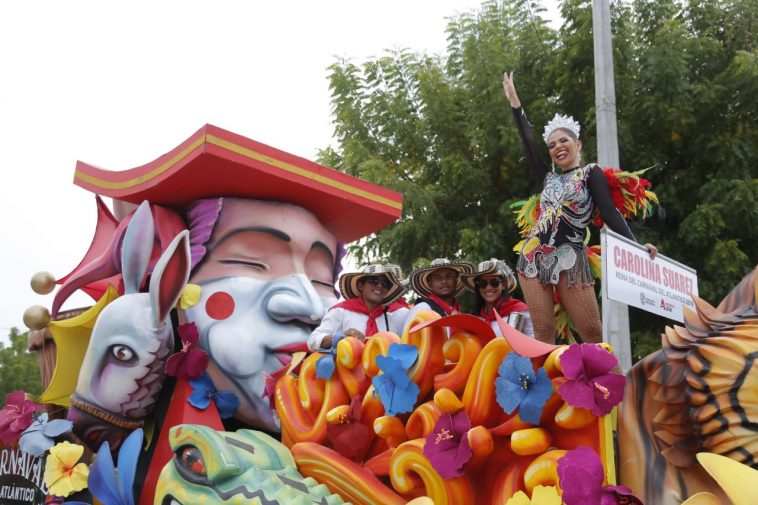 La reina del Carnaval del Atlántico, Carolina Suárez, presidió la caravana en una carroza que recorrió las principales calles del municipio y en la que, de acuerdo a sus organizadores, participaron más de 2 mil actores del Carnaval pertenecientes a danzas, comparsas y disfraces.
