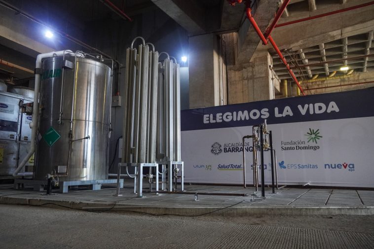 Con el propósito de brindarles una mejor atención y facilitarles una pronta recuperación a los pacientes con COVID-19, la Alcaldía de Barranquilla hizo una alianza con la Fundación Santo Domingo, que permitió contar con una red de oxígeno en el hospital de campaña de baja complejidad ubicado en el centro de eventos Puerta de Oro.