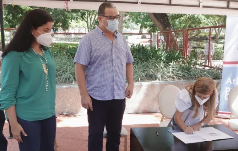 La firma de este convenio se hizo en el parque Espejo de Agua de Baranoa, donde la gobernadora del Atlántico, Elsa Noguera, señaló que esto hace parte del plan de desarrollo de la administración departamental. La mandataria departamental destacó el liderazgo del alcalde de Baranoa para alcanzar algunas metas de desarrollo en el municipio.