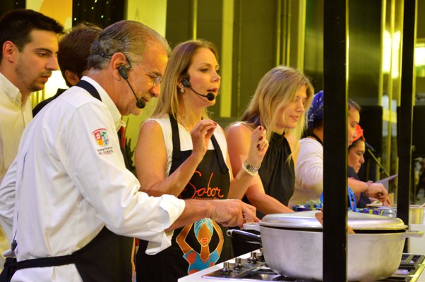 En familia, el gobernador del Atlántico, Eduardo Verano De la Rosa, cocinó para el público una torta de plátano en el primer día de Sabor Barranquilla, feria culinaria con la que se inauguró el Centro de Eventos del Caribe Puerta de Oro.
