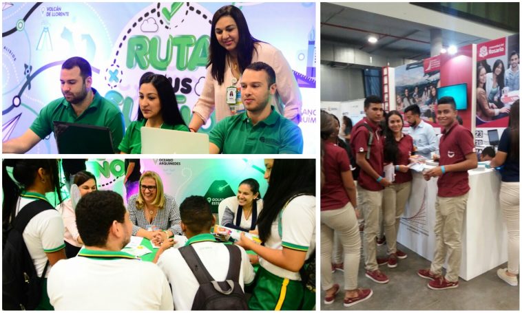 El primer día de feria educativa organizada por la Cámara de Comercio y el Distrito, en el Centro de Eventos Puerta de Oro, contó con una significativa participación de estudiantes de planteles educativos de la ciudad.