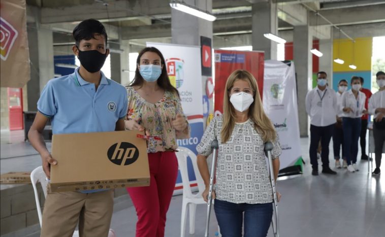 “Nos propusimos una maratónica entrega de 10 mil computadores, que nos permite pasar de 7 a 3 niños por computador. Con esto mejorará la eficiencia en el uso de estas herramientas y, al mismo tiempo, mejoramos los procesos de aprendizaje de nuestros niños, niñas y adolescentes”, explicó la Gobernadora.