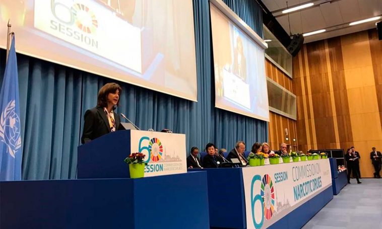 “Las cifras son contundentes. Estamos lejos de resolver los múltiples problemas asociados a las drogas ilícitas”, declaró la Canciller en el segmento de alto nivel del 60º Período de Sesiones de la Comisión de Estupefacientes de las Naciones Unidas, en Viena.