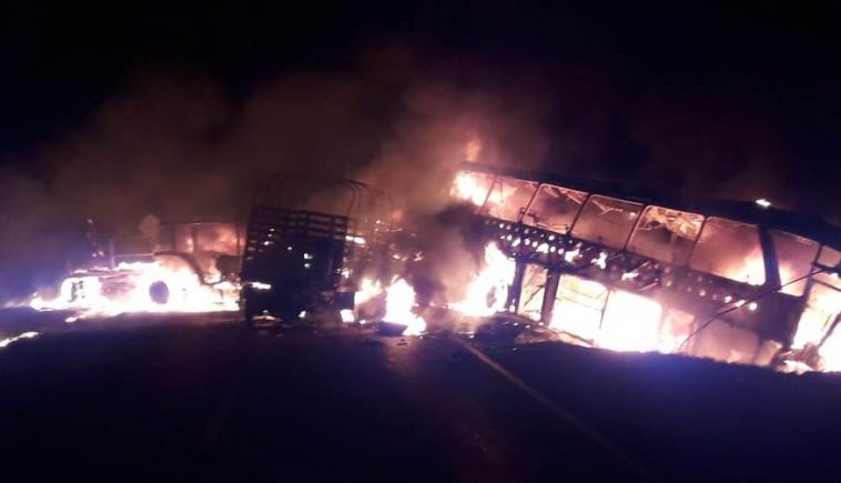 Precisó que un bus de servicio interdepartamental chocó contra un camión furgón y un tractor, muriendo calcinada la mujer.