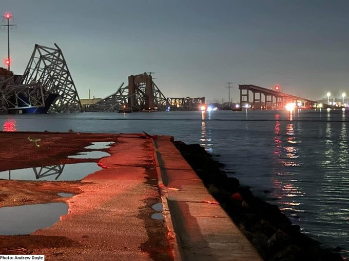 Barco chocó contra el mayor puente de Baltimore y lo derrumba mientras lo cruzaban varios vehículos